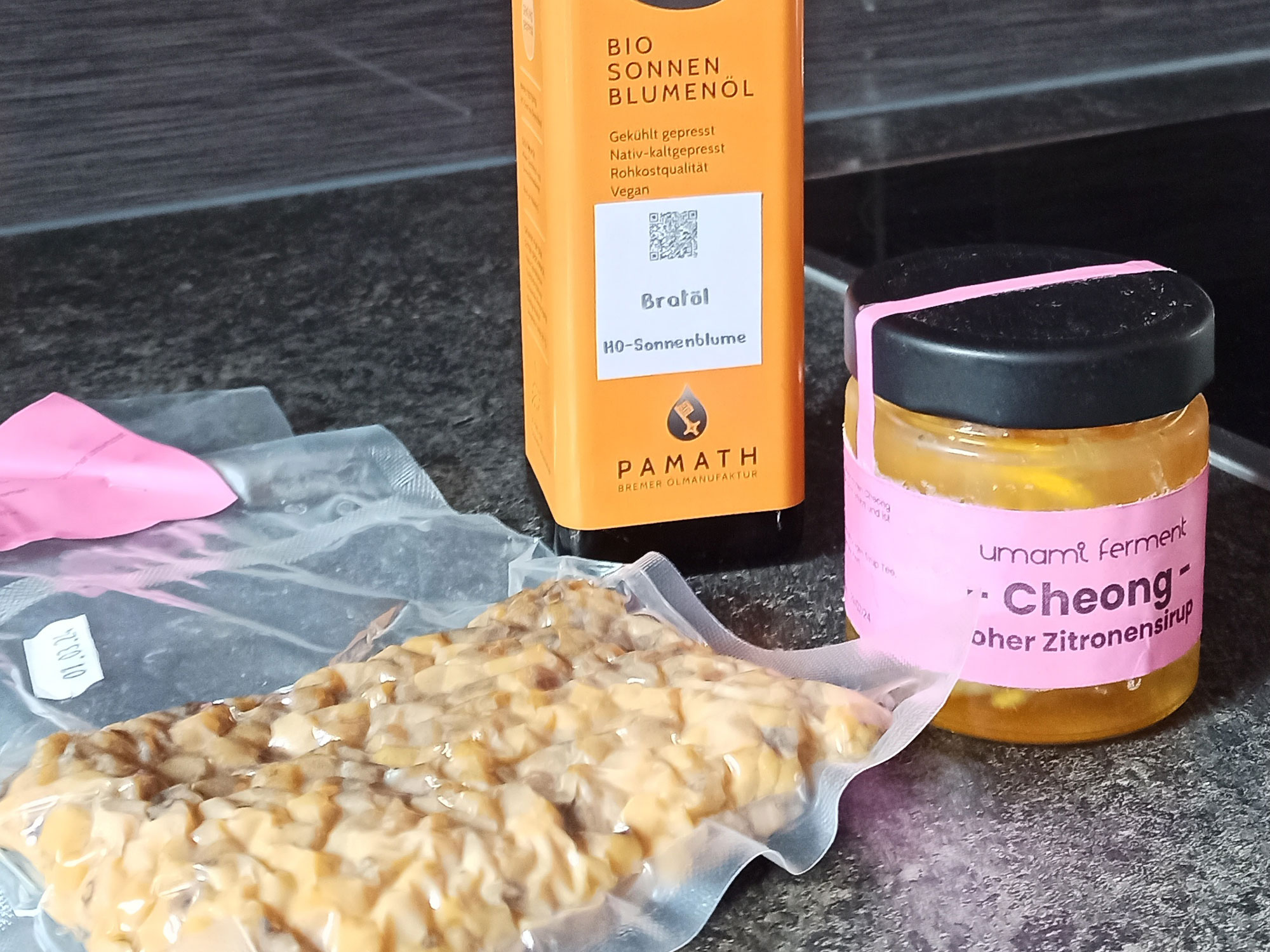 Tempeh aus Riepholmer Erbsen. Ein exotisches Produkt, ganz regional erzeugt.