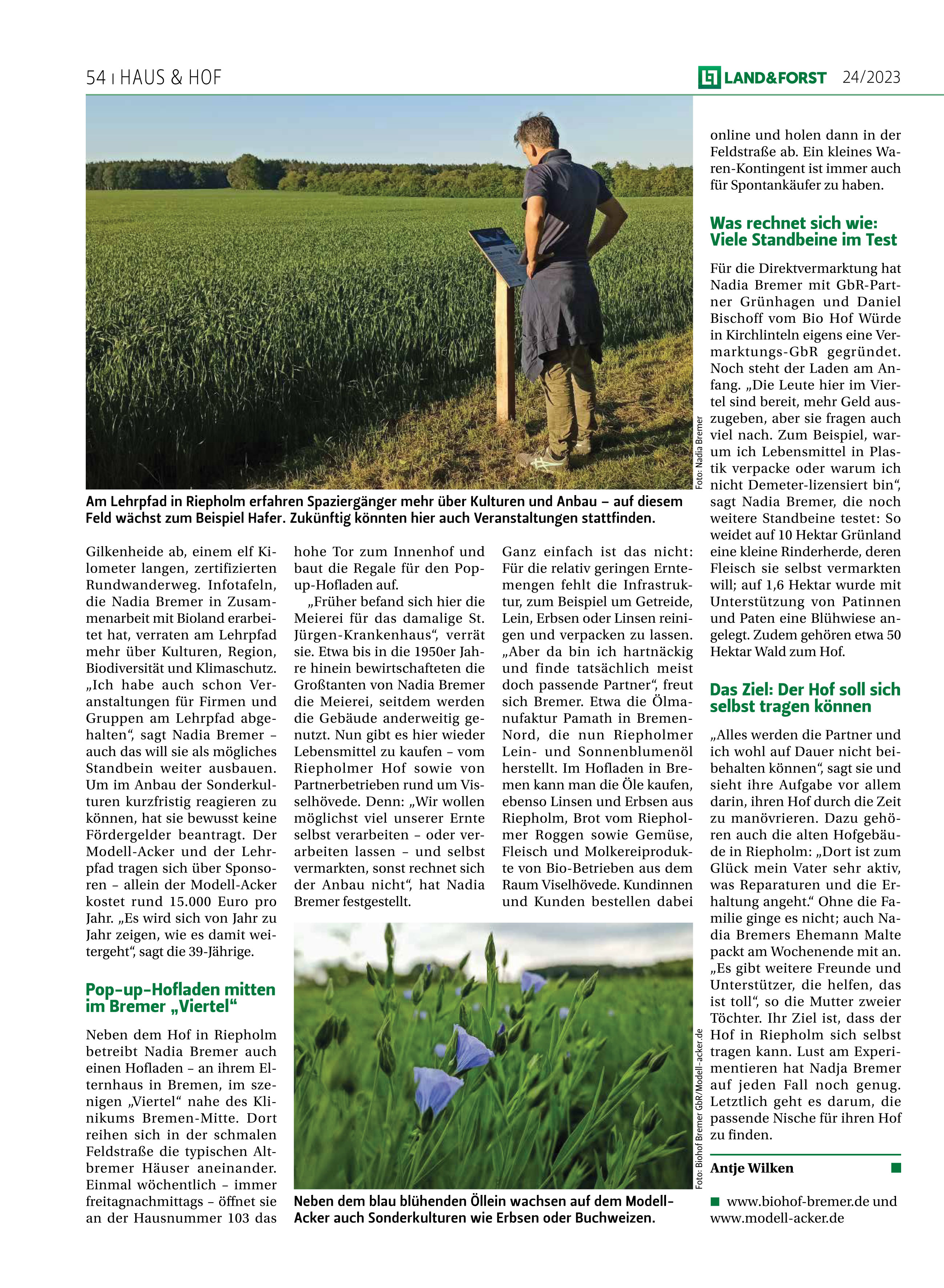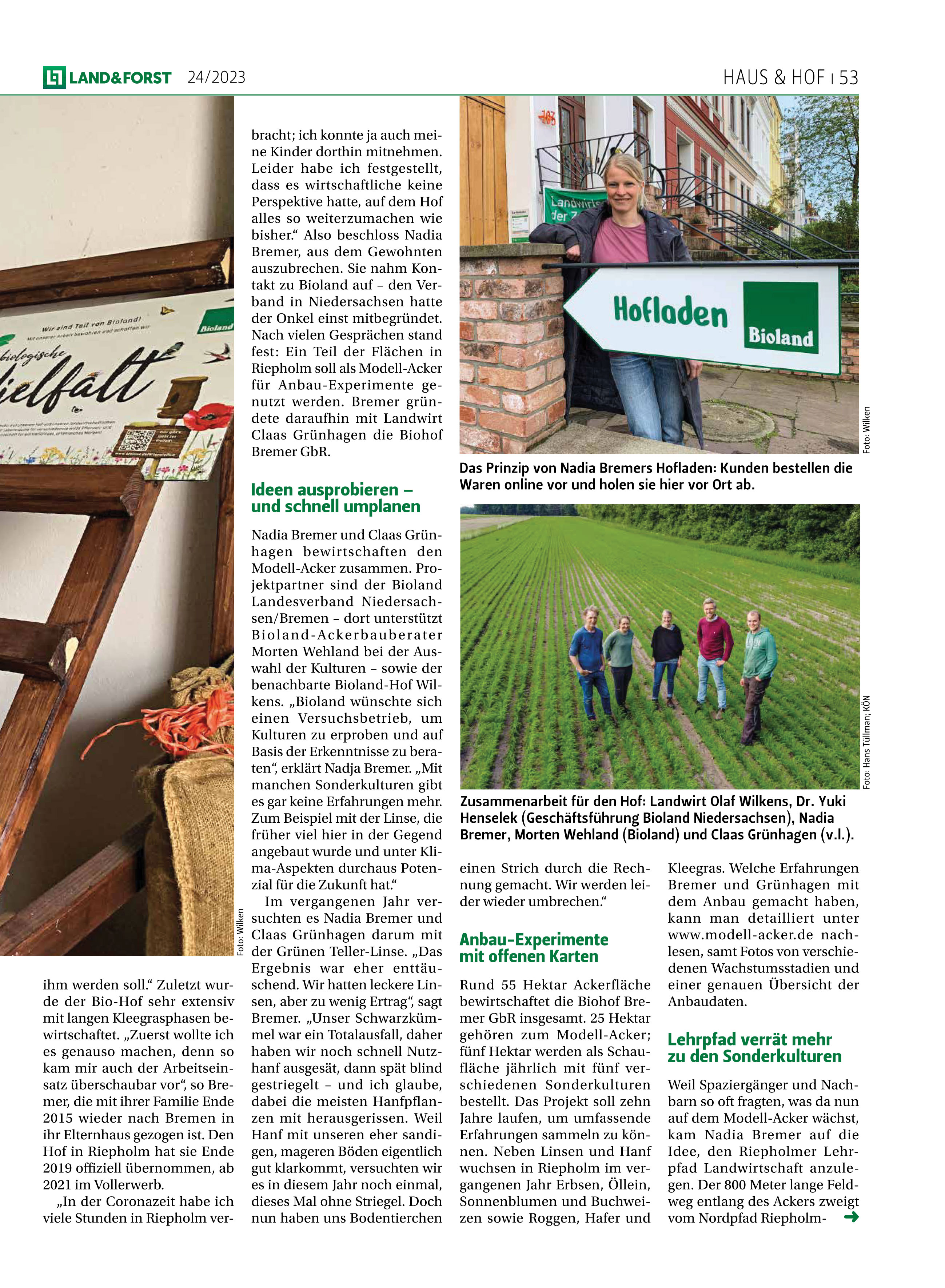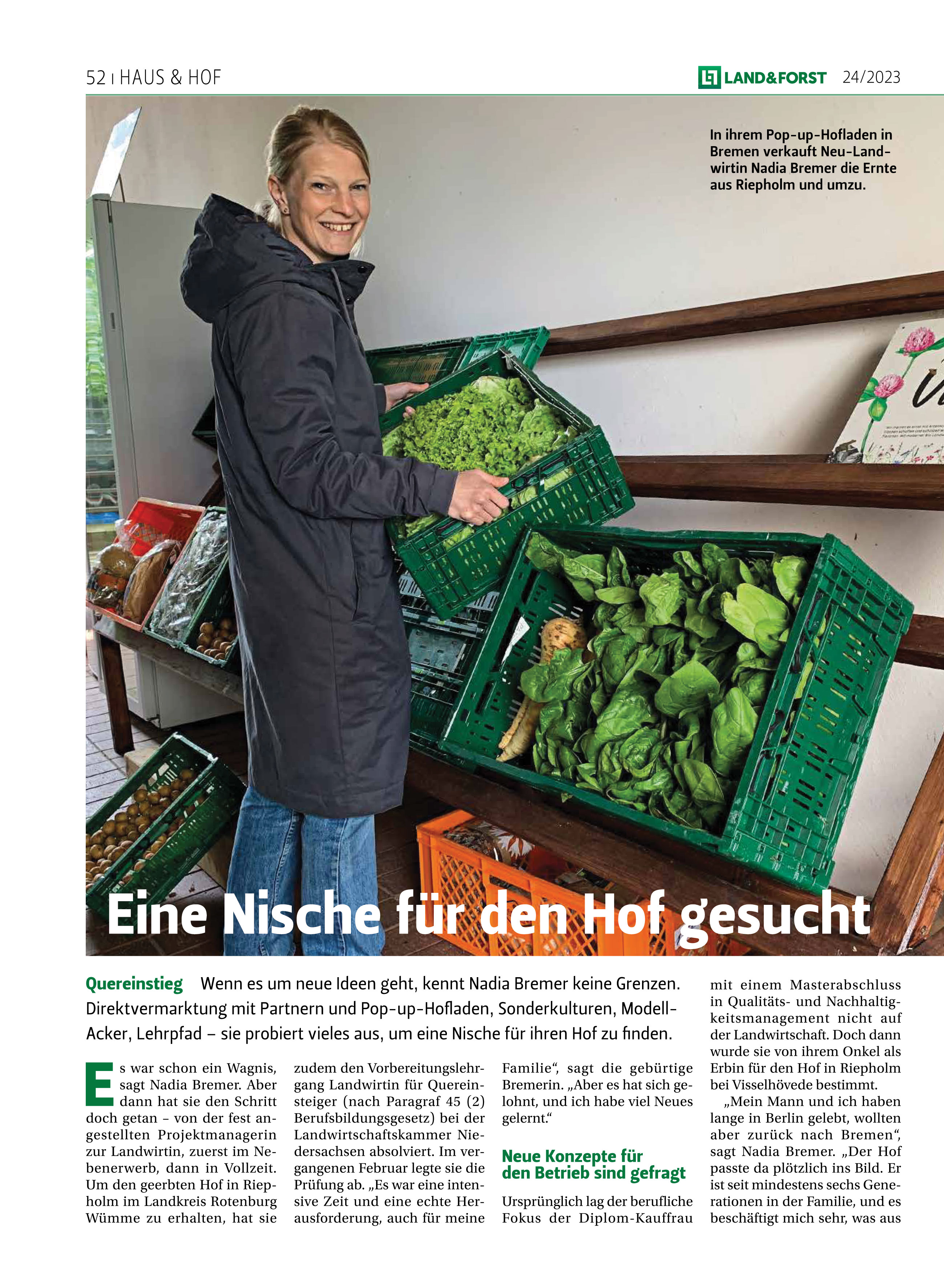 Die "grüne Zeitung" ist aus den Wohnzimmern und Küchen von Akteuren der Land- und Forstwirtschaft kaum wegzudenken. In Ausgabe 24/2023 der LAND&FORST erschien ein längerer Beitrag über unseren Hof.